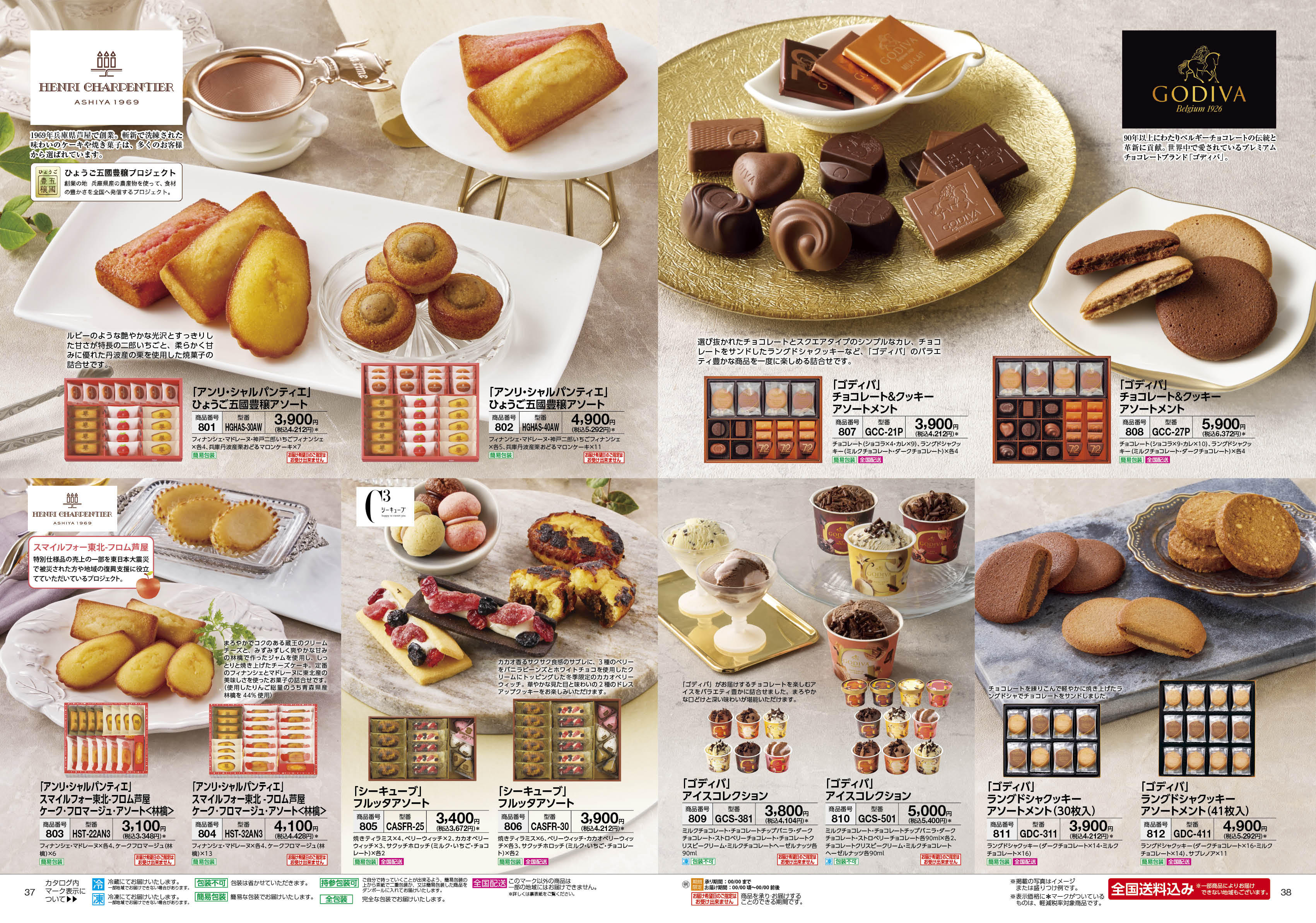 「ブランドスイーツ」コーナーでは「銀座千疋屋」や「アンリ・シャルパンティエ」や「GODIVA」などの名店のスイーツを集めました。