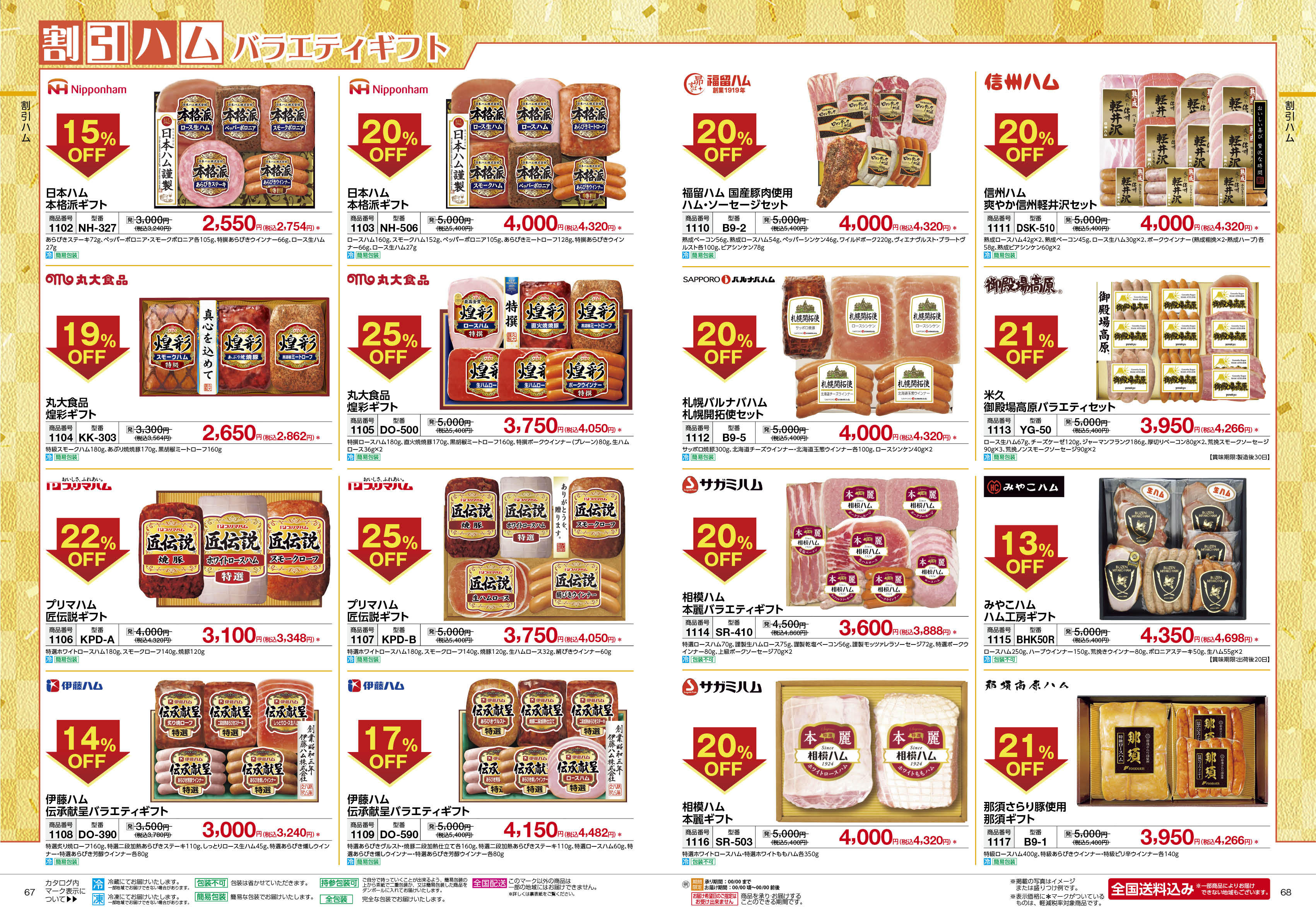 人気の売れ筋商品を最大40%引きなどのお得な価格で取り揃えている「大幅割引コーナー」。またギフトの中でも人気の高いハムギフトも「割引ハムGIFT」特集にてお買得価格にて提供いたします。